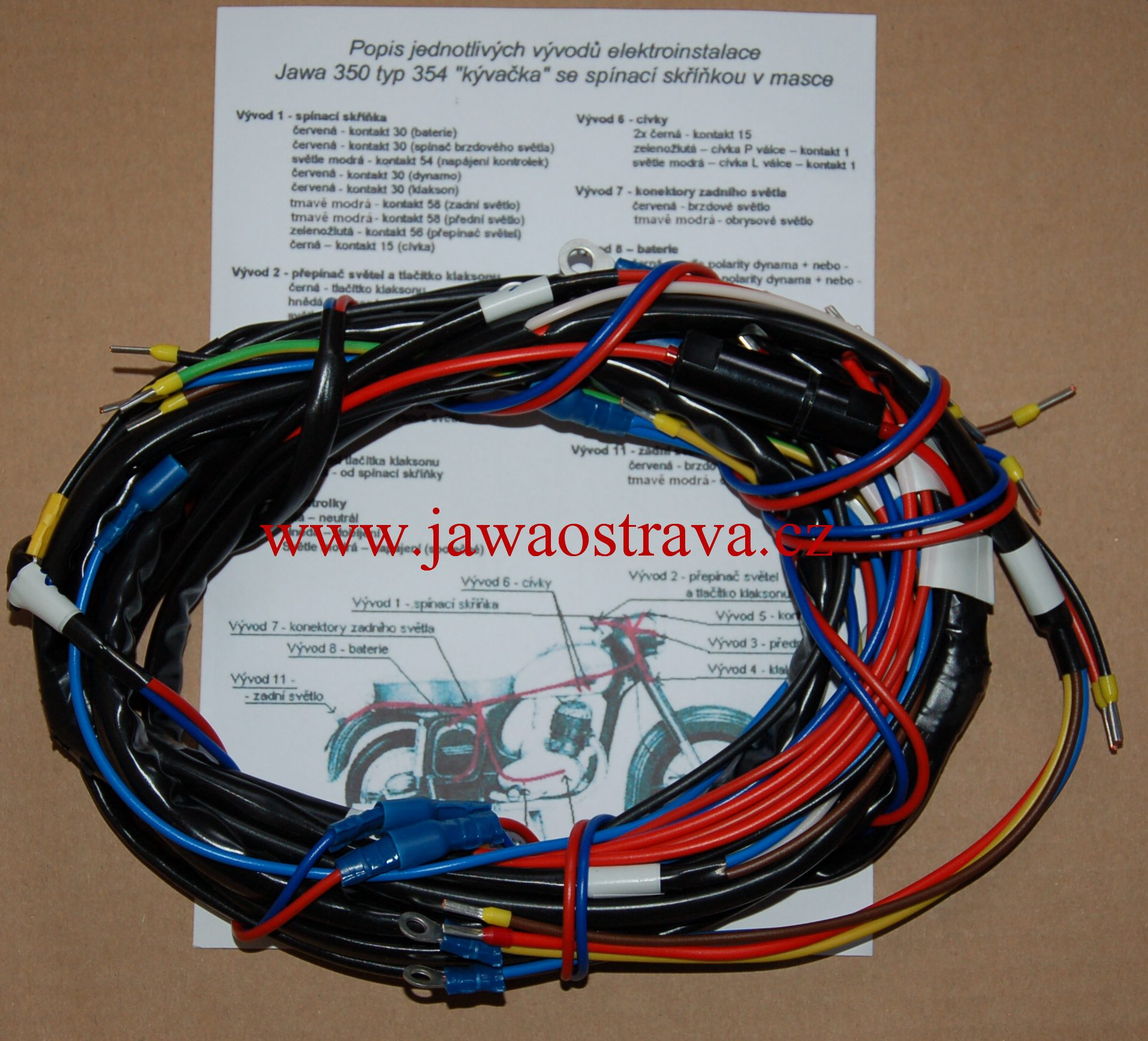 Elektroinstalace Jawa 350/354 se spínací skříňkou v nádrži